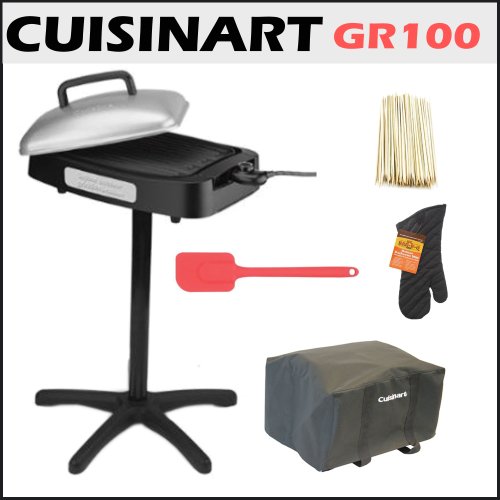 Cuisinart GR-100 Indoor Outdoor Griddler:Grill or griddle rain or shine! The Indoor Outdoor Griddler brings convenience and versatility to both table and patio.Wake up to pancakes and bacon in the kitchen. End the day grilling steaks outdoors. Temperatures range from 200degrees F to 400 degrees F to provide unlimited menu options. And with 180 square inches of grill and griddle, there'senough cooking surface to feed the whole family. A dishwasher-safe plate and an integrated drip tray make cleanup asnap. And because its powered by electricity, it goes where gas and charcoal can't.Features and Specs:Reversible nonstick grill & griddle cooking plateCooking plate is dishwasher safe for easy cleaningLarge cooking surface, 180 square inches per sideAdjustable temperature control probe 200F to 400FDomed metal lid with cool-touch handleCuisinart CGC-18 Tabletop Grill Tote Cover:customized fit to the Cuisinart Petit Gourmet Tabletop Portable Gas Grill (CGG-180T) and Outdoor Electric Tabletop Grill(CEG-980T). The innovative design allows use as a grill cover and as a convenient grill carrying tote. Two robust handlesallow the cover to act as a handy grill tote when inverted - like a shopping bag. Rugged and waterproof, this 600 deniernylon grill cover will stand up to the elements for years. The embroidered Cuisinart logo looks sharp and won'tpeel or fade.Features and Specs:Fits Cusinart Tabletop grills CGG-180T and CEG-980TUse as a tote bag with the convenient carry handlesWaterproof material protects your grill from the elements- wind, rain, dirt and dustMade of 600 denier nylonMeasures 18 by 15 by 10-InchMr. BBQ Deluxe BBQ Cooking Mitt:One size fits allTwill and cottonFire retardantEase of cooking without burning your handsEasy to handle tools